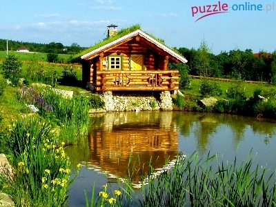 Puzzle Staw, Drewniany, Domek, Rośliny