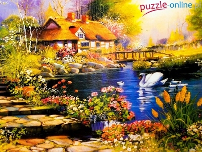 Puzzle Staw, Obraz, Domek, Łabędź