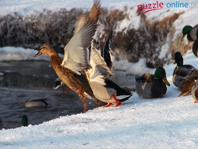 Puzzle Staw, Dzikie, Kaczki, Śnieg
