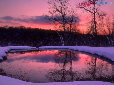 Puzzle Śnieg, Staw, Zmierzch