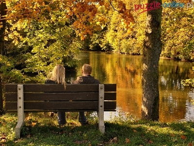 Puzzle Staw, Ławka, Park, Para