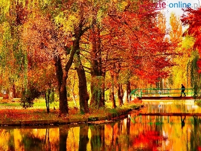 Staw, Jesień, Park, Mostek