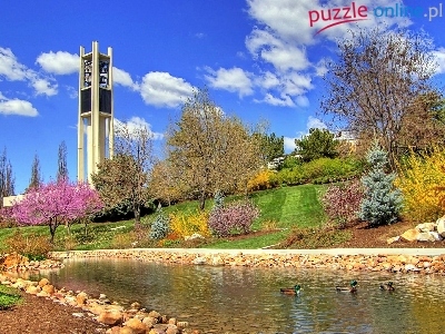 Staw, Dzwonnica, Wiosna, Park, Kaczki