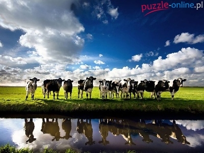 Puzzle Stawem, Krowy, Nad, Łąka