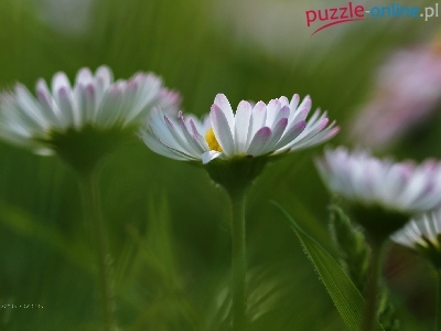Puzzle Białe, Stokrotki, Kwiaty
