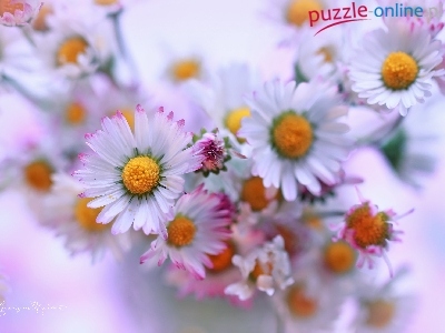 Puzzle Białe, Stokrotki, Kwiaty