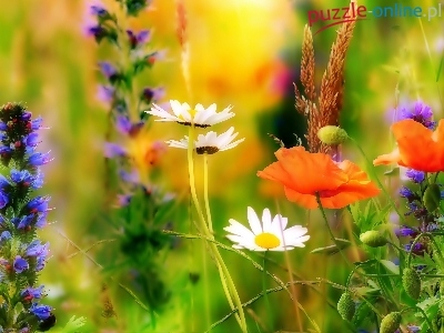 Stokrotki, Kwiaty, Łąka, Polne, Maki, Trawy