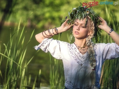 Stokrotki, Warkocz, Trawy, Kobieta, Wianek, Biżuteria