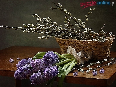Puzzle Stół, Kosz, Bazie, Kwiaty