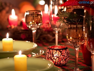 Puzzle Stół, Świece, Kieliszki, Nastrój