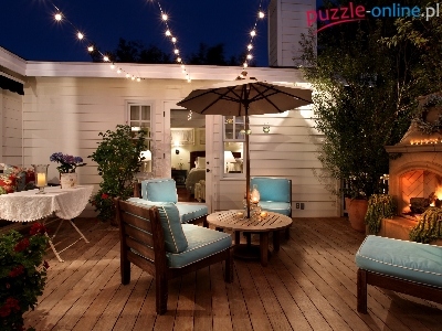 Stół, Taras, Fotele, Kominek, Podłoga