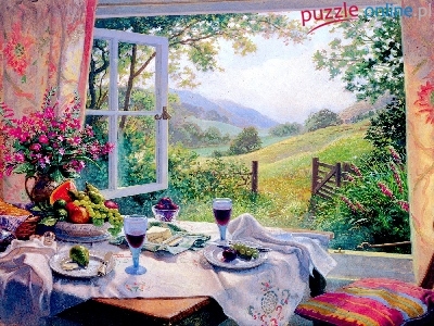 Puzzle Stół, Obraz, Okno, Nakrycie