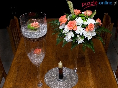 Puzzle Stół, Bukiet, Róż, Świece