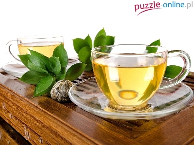 Stolik, Listki, Herbata, Spodeczki, Filiżanki