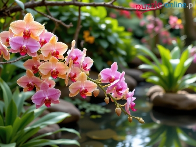 Kwiaty, Oczko wodne, Storczyki, Roślinność, Kamienie