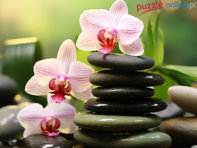 Puzzle Kwiaty, Kamienie, Bladoróżowe, Storczyki