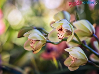 Miniaturowa, Orchidea Biały, Storczyk, Gałązka Blondynka, Uśmiechnięta, Storczyki Czerwono, Storczyki, Zielone, Liście, Białe Makijaż, Kobieta, Storczyki Kwiaty, Nakrapiane, Storczyka Storczyk, Kwiat, Pąki Żółte, Storczyki Storczyki, Białe, Wazon Storczyk męski Orchis mascula Storczyk, Pąki Różowa, Orchidea Storczyki, orchidea