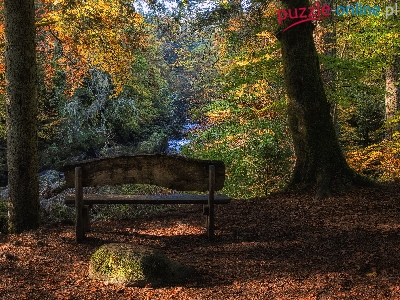 Puzzle Strumyk, Las, Ławka, Jesień