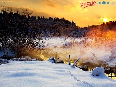Puzzle Strumyk, Las, Słońce, Zima