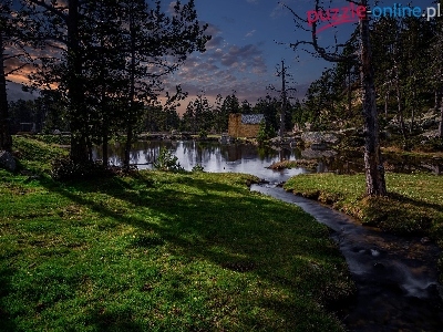 Strumyk, Kamienie, Drzewa, Staw, Budynek