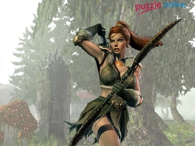Puzzle Strzały, Dziewczyna, Łuk, Drzewa
