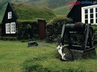 Puzzle Studnia, Wiejskie, Domy, Kot