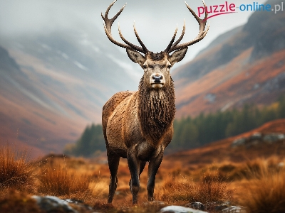 Góry, Poroże, Jeleń, Sucha, Mgła, Trawa