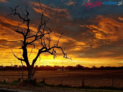 Puzzle Suche, Zachód, Słońca, Drzewo