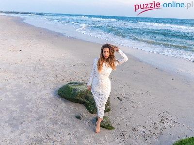 Kobieta, Sukienka, Biała, Morze, Plaża