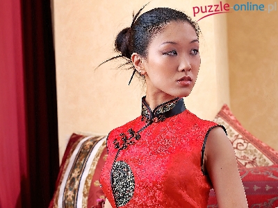 Puzzle Sukienka, Gejsza, Czerwona, Makijaż