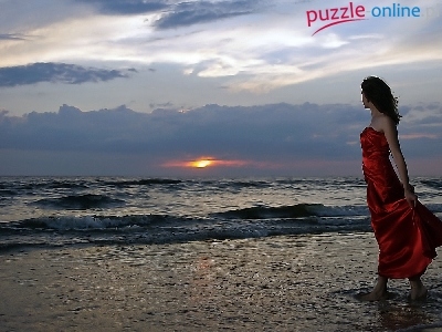Puzzle Sukienka, Kobieta, Czerwona, Plaża