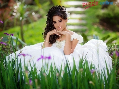 Puzzle Suknia, Kobieta, Biała, Kwiaty