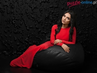 Puzzle Suknia, Brunetka, Czerwona, Pufa