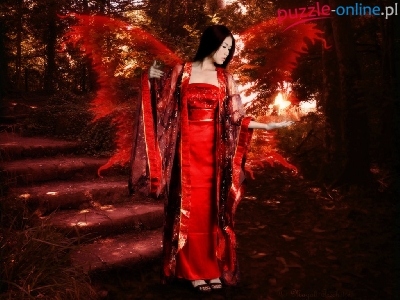 Puzzle Suknia, Kobieta, Czerwona, Skrzydła