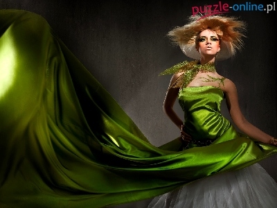 Puzzle Suknia, Kobieta, Zielona, Fryzura