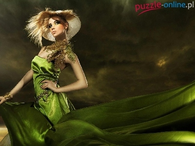 Puzzle Suknia, Kobieta, Zielona, Kapelusz