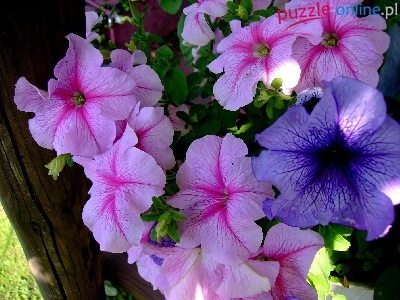 Surfinie, Niebieskie, Przyroda, Kwiaty, Różowe
