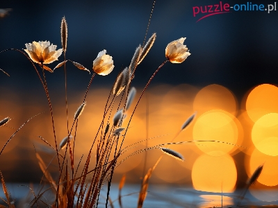 Puzzle Odbite, Kwitnąca, Trawa, Światła