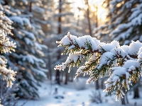 Światło, Grafika AI, Słoneczne, Drzewa, Las, Gałązki, Zima, Ośnieżone