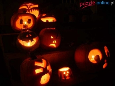 Puzzle Halloween, świecące dynie