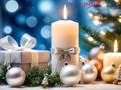 Boże Narodzenie, Bombki, Świece, Świerk, Grafika, Prezent