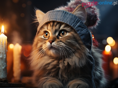 Puzzle Świece, Czapka, Kot