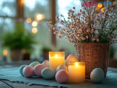 Wielkanoc, Åšwiece, Pisanki, Kwiaty, Koszyk