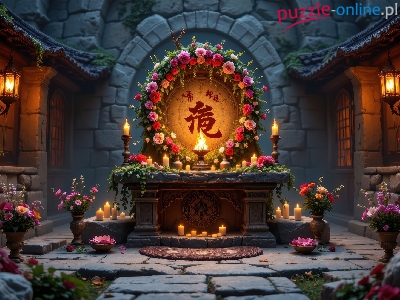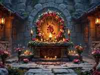 Świece, Kamienna, Ołtarz, Budowla, Wieniec, Chiński, Znak, Kwiaty, Latarnie