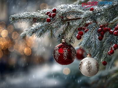 Puzzle Bombki, Boże Narodzenie, Świerk, Grafika AI