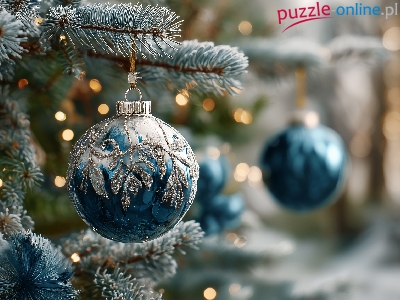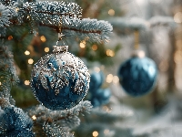 Boże Narodzenie, Bombka, Niebieska, Gałązki, Grafika AI, Świerka