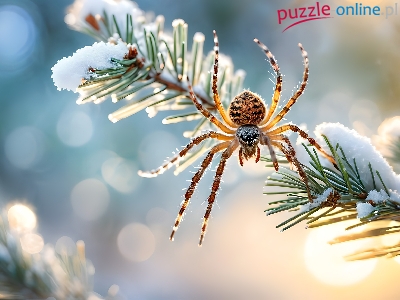 Pająk, Świerkowa, Gałązka, Grafika, Śnieg