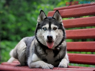 Puzzle Syberian Husky, Pies, Ławka