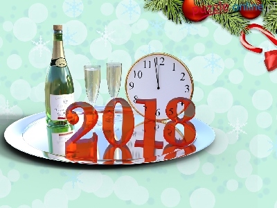 2018, Zegar, Grafika 2D, Kieliszki, Nowy Rok, Szampan, Sylwester