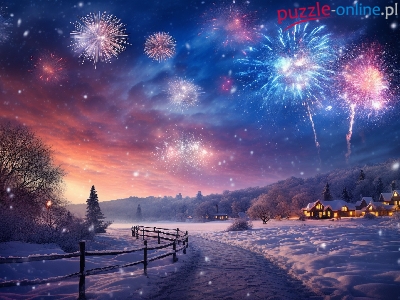 Domy, Fajerwerki, Zima, Sylwester, Droga, Nowy Rok